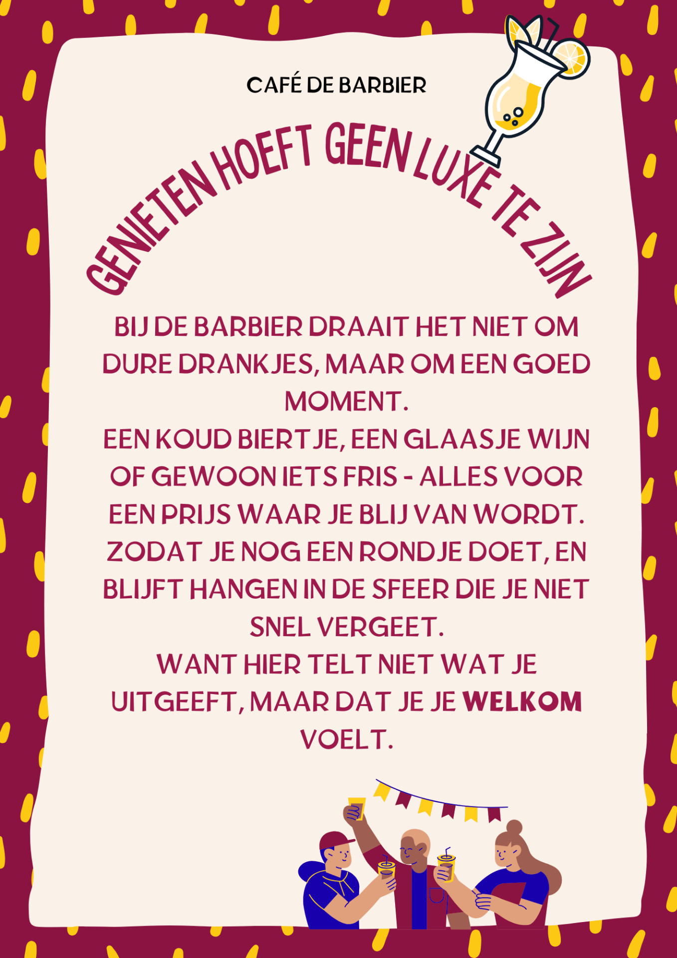 Want bij De Barbier telt niet wat er in je glas zit,